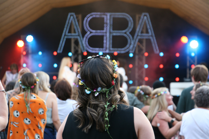 On an English Summer evening we head in the relentless pouring down rain to the beautiful venue that is Lotherton Hall in Aberford, near Leeds. Despite the heavy weather the rain has not deterred people as we all head towards the arena, prepared in rain ponchos, with golf umbrellas, chairs, and picnics in tow; looking to find the best spot to watch the show and have a picnic. We are greeted by friendly enthusiastic staff who show us where to park and also into the arena, they are dancing along to the loud backing track and thankful so many have turned out to see tonight’s ABBA tribute show.