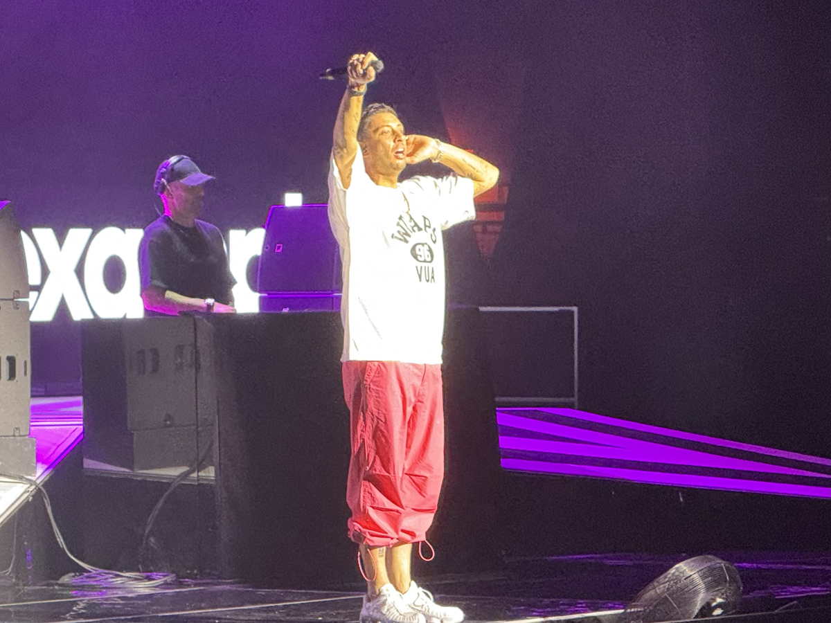 Walking into Sheffield Arena, you could have been mistaken for thinking you had arrived in one of Sheffield’s long-gone superclubs such as Gatecrasher or Bed, as the deep bass vibrated around the arena and the neon lights flashed while Example and his DJ took to the stage.