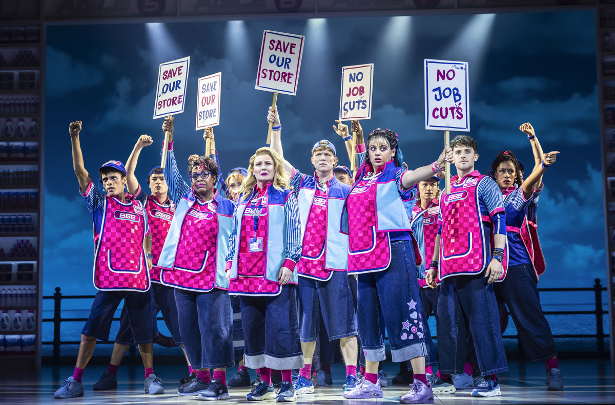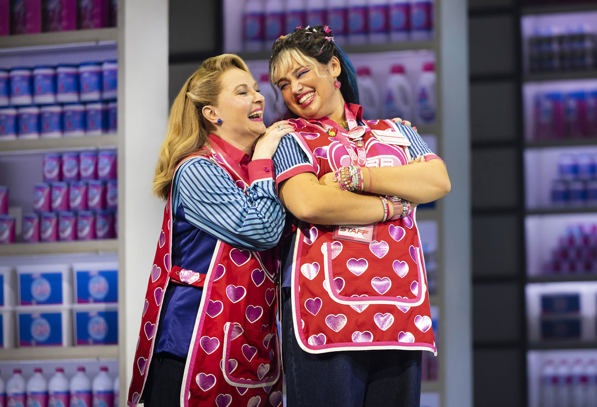 The set is the first thing that hits you. Clearly, we are in a supermarket – Better Best Bargains (BBB) to be precise. Floor to ceiling aisles of produce fill the stage (cleverly we can only see aisles 5,6,7,8 – if you know, you know!) and the neon colours and lights set the tone for the rest of the show.