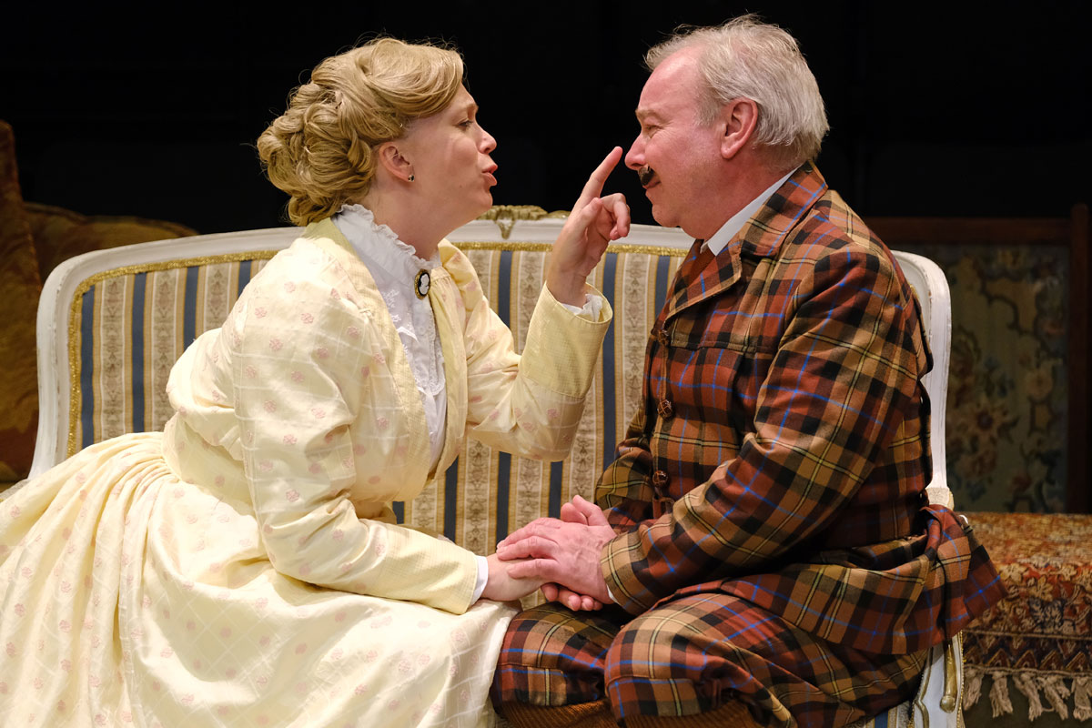 It’s so lovely to see Frances Marshall back at Stephen Joseph Theatre – we last saw her, heavily pregnant, in Family Album two years ago. She is playing Harriet (Harry) Golding, the founder of the company, who pragmatically recognises that she is running a business just like every other business, which has salaries to pay and overheads to be met. Jack’s booking might be fraught with difficulties, but he’s paying them well and they can’t afford to back out.