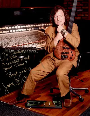 Back in the day, we were developing some basses and some bass amps and stuff, and I took some down for him to look at, and we worked with him on a few things, I didn’t know him very well, but we did keep in touch for a while. He was a great guy; we even wore the same watch! Unfortunately the framed photograph was so large I could not slide it under my T-Shirt to sneak out, and add to my musical heroes shrine.