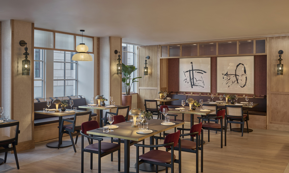 With rattan-backed chairs, folding screens and foliage galore, this light and airy space is a world away from the bustling London streets that lie just outside. Lantern-style lamps adorn the walls alongside calligraphy art pieces, while chime music plays faintly in the background, creating a warm and welcoming ambience.