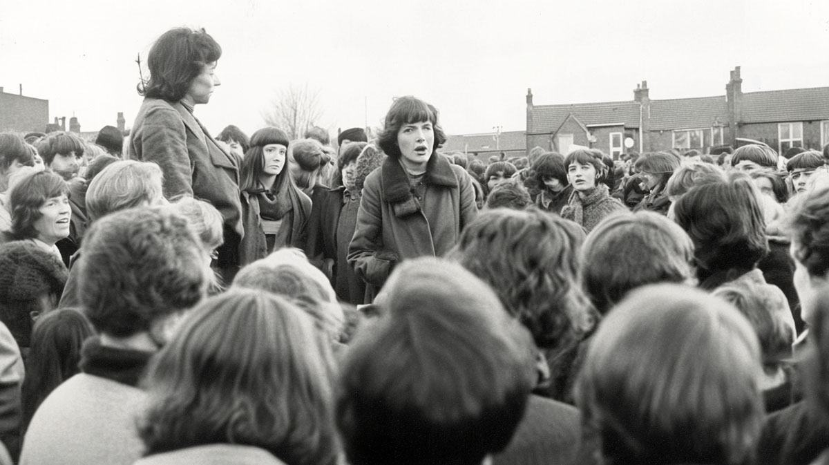 Although textiles were a thriving industry in the city, wages were low, and for women, who made up two-thirds of the workforce, they were the lowest paid of all. In February 1970, clothing workers, most of them women, began an unofficial strike in support of their demand for a one shilling per hour increase. The strike was an angry reaction to a settlement between the National Union of Tailors and Garment Workers (NUTGW) and the Clothing Manufacturers’ Federation agreeing new pay scales of 6 shillings and 7 pence per hour for skilled men, but only 4 shillings and 9 pence for skilled women. Low wages, pay disparities between men and women, and a new, unacceptable productivity agreement were all issues behind the strike.