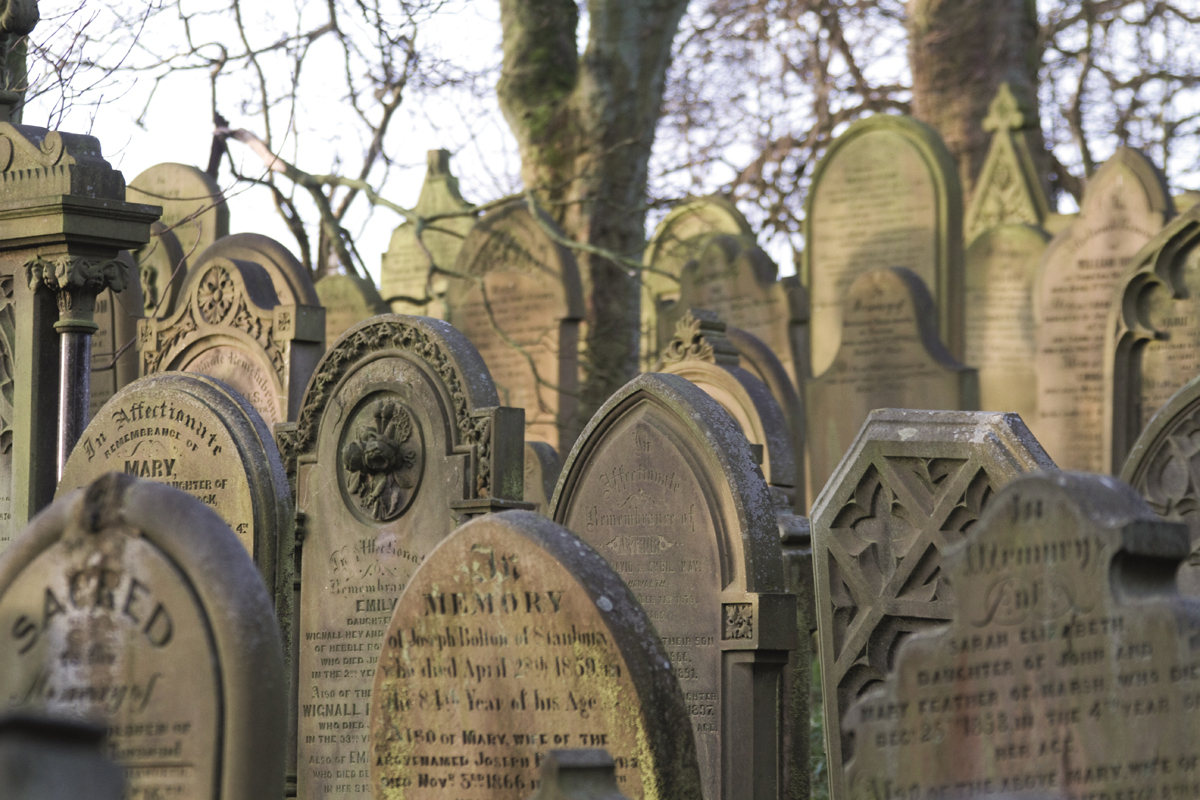 The church footprint, although it is said dates to ancient times, had last been enlarged in 1755 to accommodate the large congregations that William Grimshaw attracted to the village. Grimshaw, who was firm friends with John Wesley, was the rector of Haworth from 1742 until his death from a fever in 1763. He was heavily involved in the Evangelical movement in that period and legend has it he was known as the ‘flogging preacher’, forcibly rounding up locals from the pubs and encouraging them to join his church services. He was known to preach up to thirty times a week. John Wesley wrote of him: ‘A few such as him would make a nation tremble … he carries fire wherever he goes.’ A stone font in the graveyard displays his name.